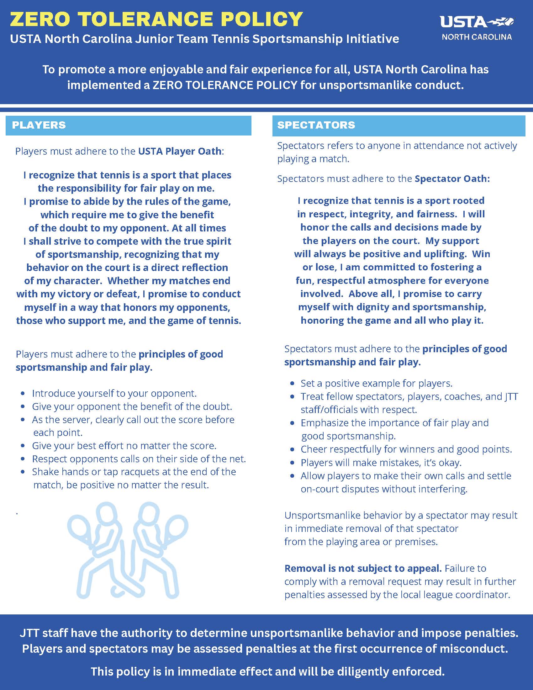 To ensure a safe environment, the USTA has developed the Safe Play program. This is a requirement for coordinating/coaching/managing USTA Junior Team Tennis. Visit